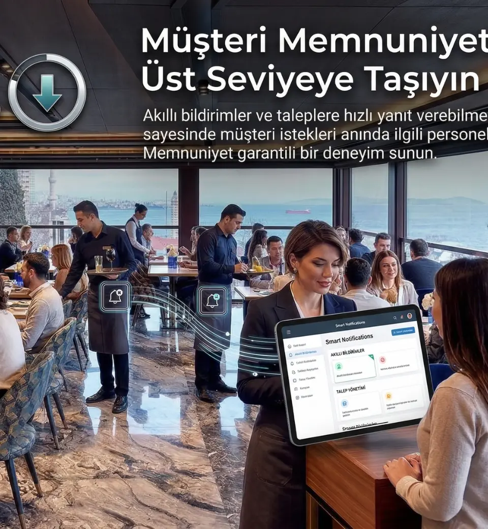 Restoranınızdaki hizmet kalitesini kusursuz hale getirmek için tasarlanan akıllı bildirim sistemimiz, misafir taleplerini saniyeler içinde analiz ederek doğrudan ilgili personele iletir. Bu hızlı koordinasyon yeteneği sayesinde, özel isteklerden anlık masa değişimlerine kadar her türlü beklenti profesyonelce karşılanır. Manuel süreçlerin getirdiği karmaşayı ortadan kaldıran otomasyon altyapımız, personelinize zaman kazandırırken misafirlerinize kendilerini özel hissedecekleri, kişiselleştirilmiş ve memnuniyet garantili bir deneyim sunmanıza olanak tanır. İşletmenizin prestijini artırmak ve her ziyareti unutulmaz kılmak artık çok daha kolay.